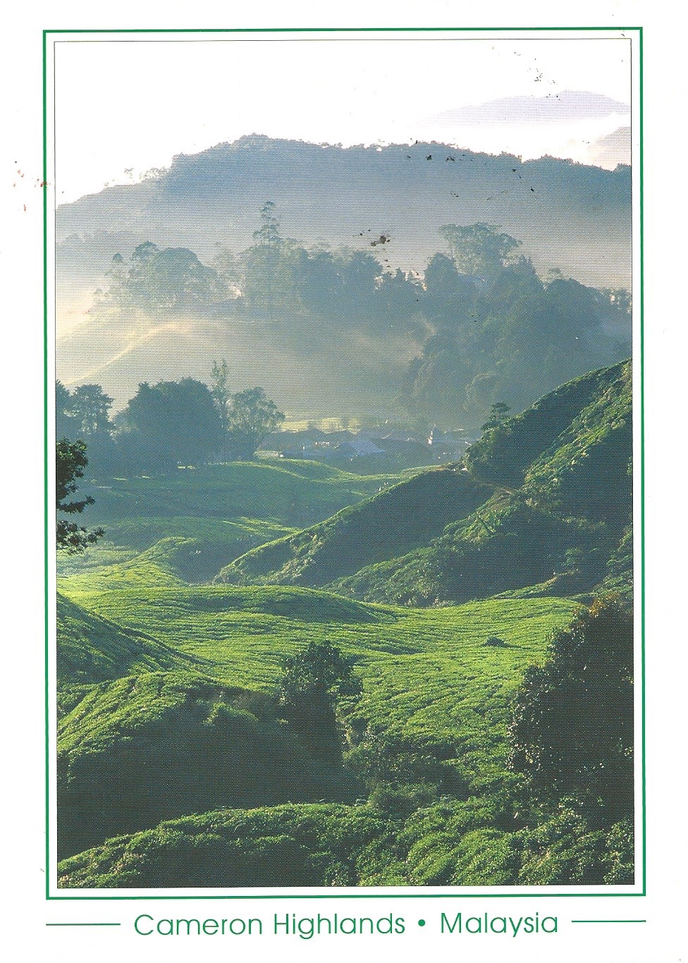 ... First of two great Malaysian postcards... a misty morning view at the Sungai Palas Tea Plantation... the most popular tea Centre in the Cameron Highlands... there is a museum providing information about the history of tea in Cameron, as well of the founders and present owners of the Boh Tea company...Thanks a lot Jobbo!!