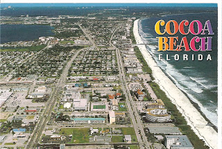 View of Cocoa Beach, on the Atlantic Ocean and within sight of the launch towers of Kennedy Space Center.