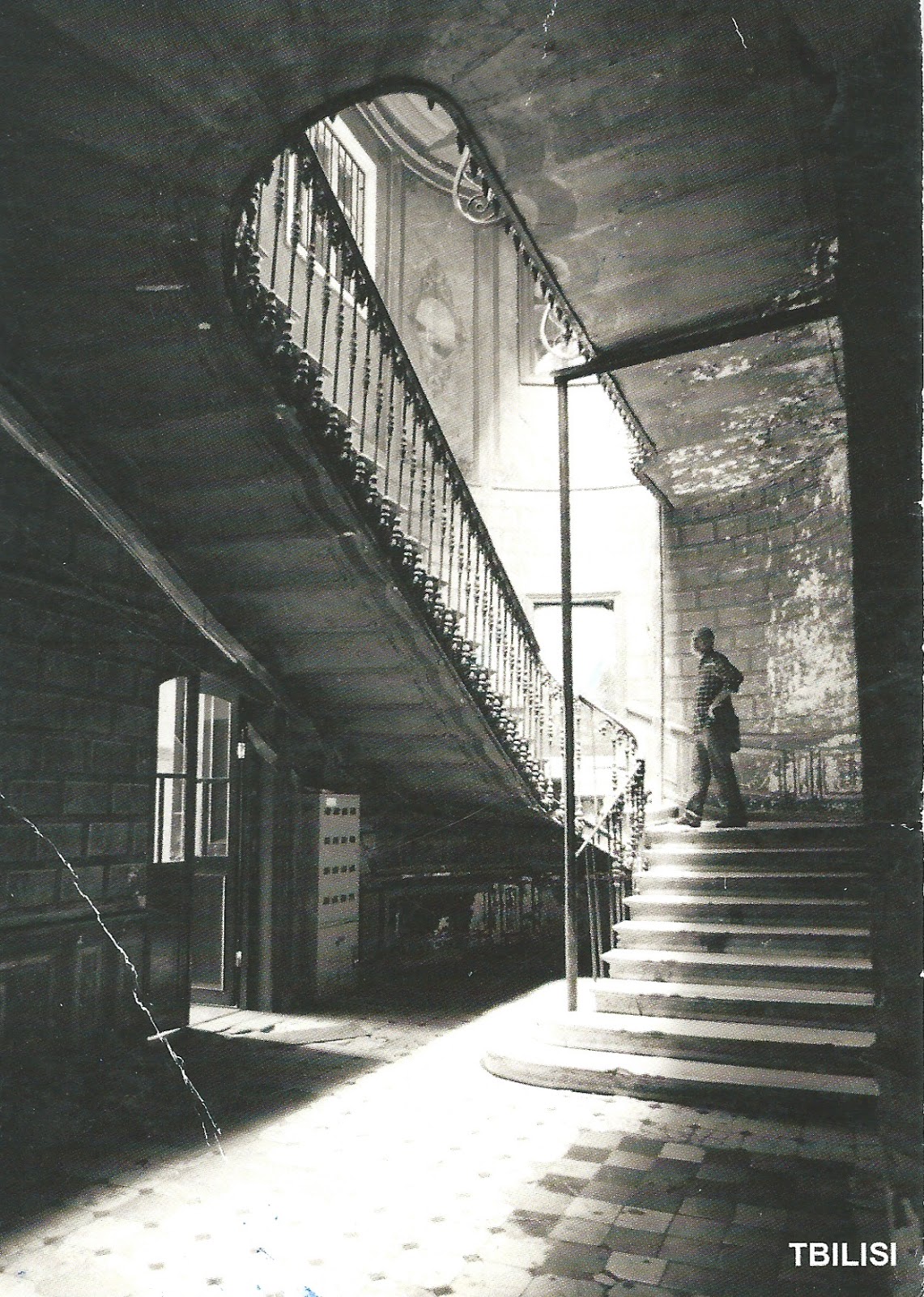Great!! First written and stamped postcard from Georgia...beautiful black and white staircase view (unfortunately I couldn't find of which building it is)...maybe anyone can help??? Many thanks Alexey!!